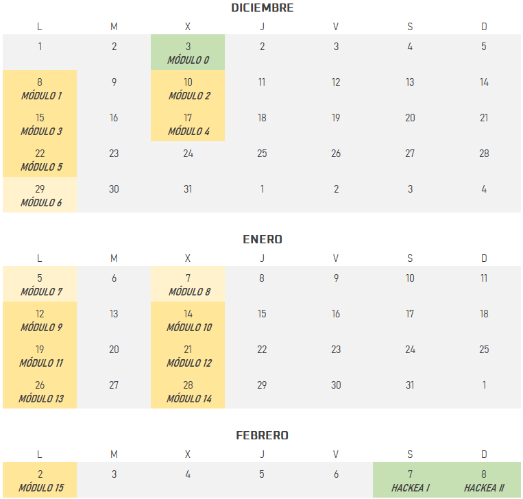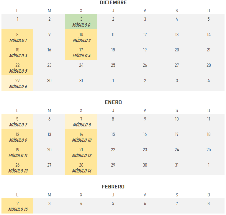 Recuerda que los MÓDULOS 6, 7 y 8 serán en Navidades y las clases serán a las 10:00h.